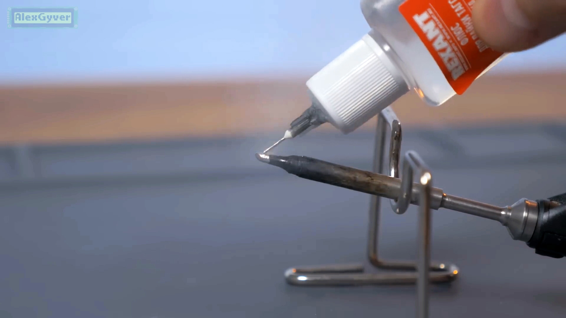 Глицериновый флюс ТАГС, в отличие от канифоли, хорошо отчищает жало паяльника и помогает ему облудиться.