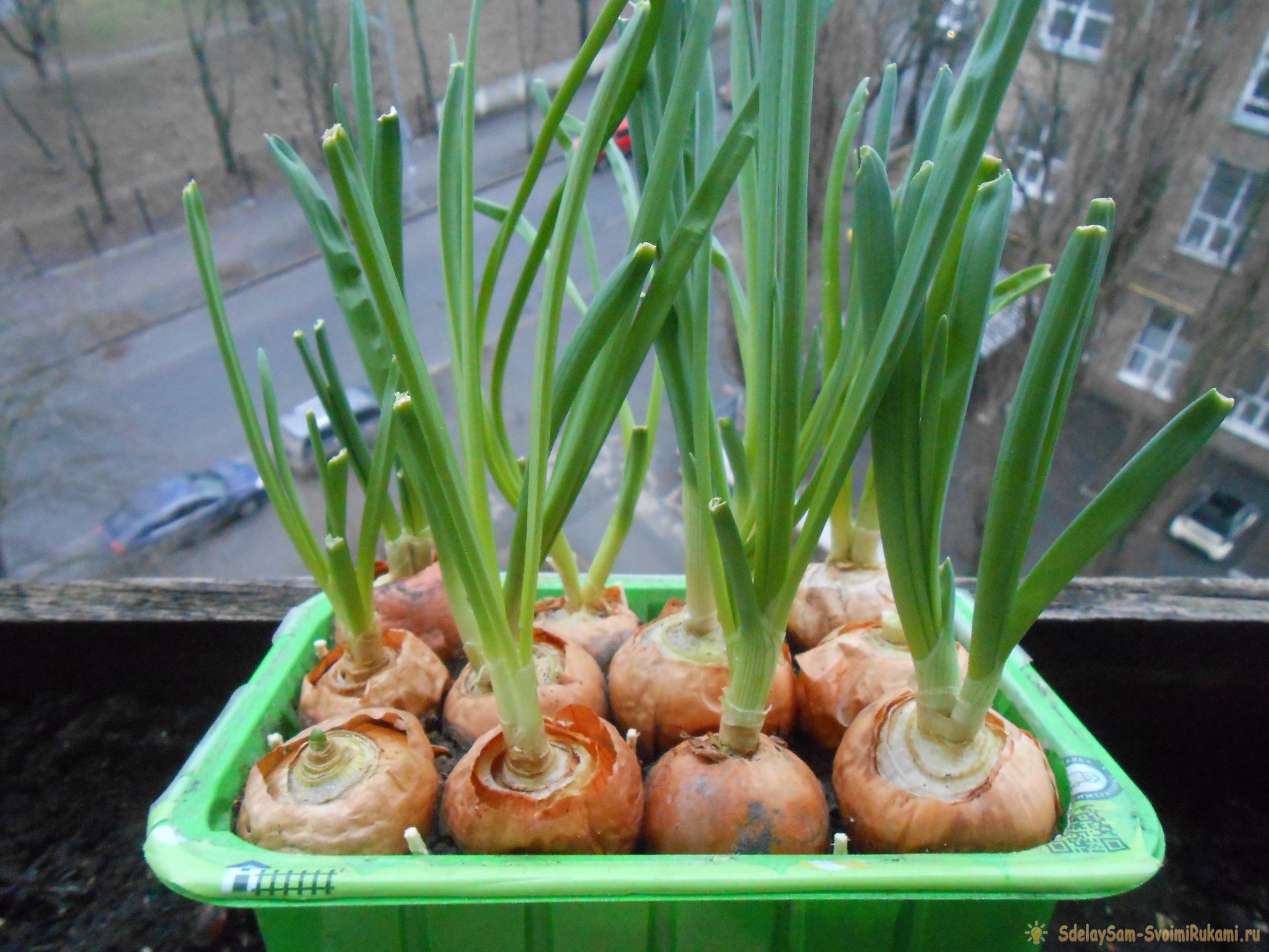 Контейнеры с луком на зелень размещают на самом светлом месте в вашей квартиры. Наибольший прирост зелени отмечается при выращивании растений на подоконниках окон, выходящих на южную сторону.